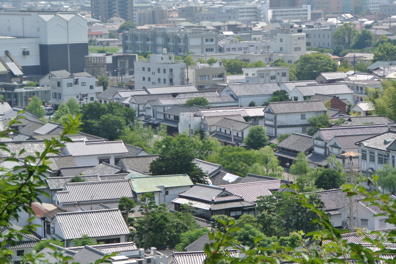 小高い場所にある境内からは、眼下に倉敷の美観地区が一面に広がり、