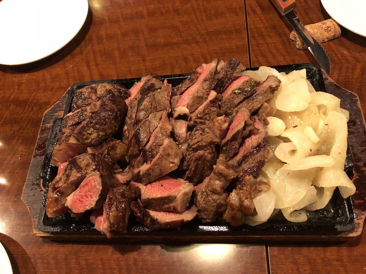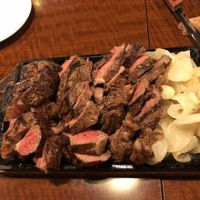 ※アメリカンなお肉です。しっかりと噛みごたえがあり、お肉食べてるぞ!という気になります。添え付けの玉ねぎが美味!