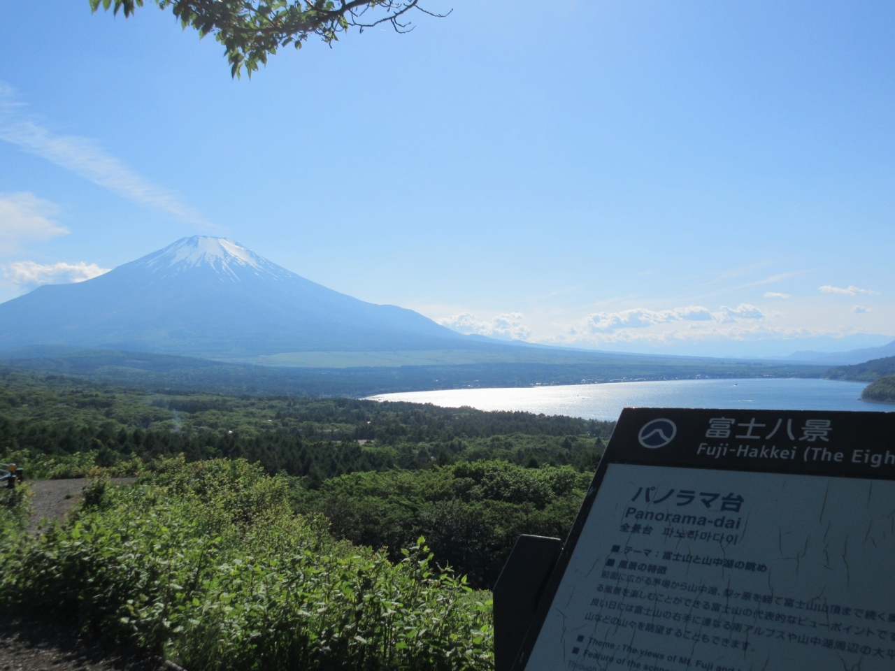 山中湖畔から登りました。それほど高く登る感じはしないのですが、ここは結構高さがあるんですね。富士山が目の高さに眺められます。それに広い裾野が雄大。眼下の山中湖もアクセントです。