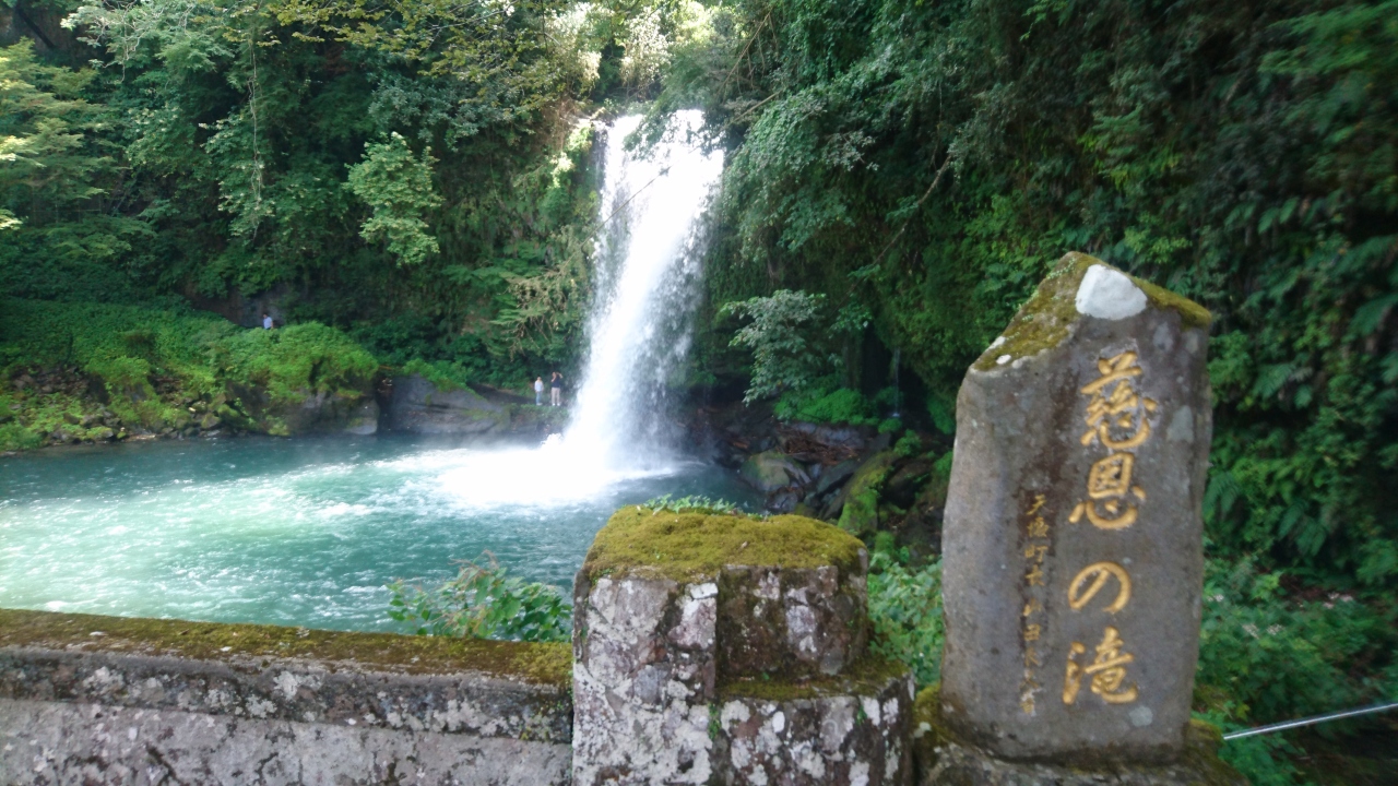 (土)の11時半頃到着。国道沿いの道の駅、慈恩の滝くすのすぐ近く。駐車場は満車に近かった。滝の裏側をぐるっと通れるとの事だが、足場が崩れているようで途中で通行止めになっていた。滝は2段になっていたが、右手の石碑と一緒に写真を撮ろうとすると角度的に1段になってしまう。