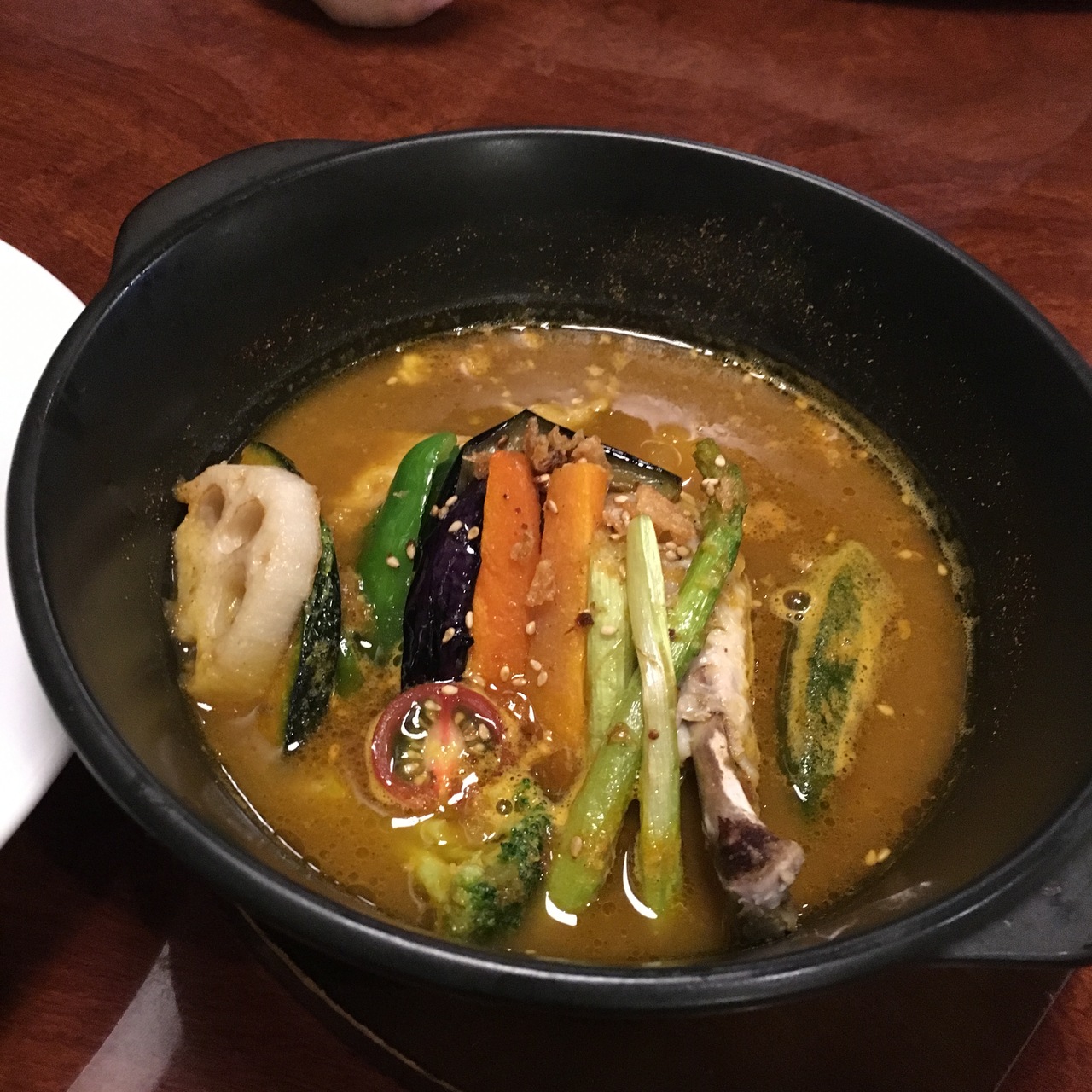 彼はチキンと野菜がたっぷりのカレー、私はエビが入ったカレーをチョイス。