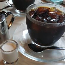 アイスコーヒーをサーブする可愛らしいカップがギャップー。