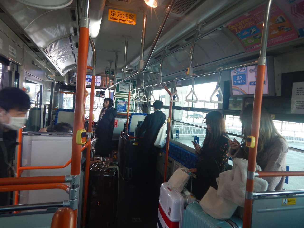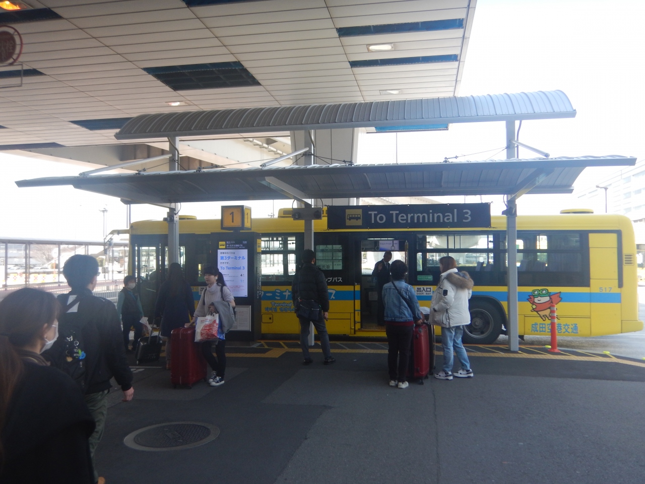 以前は第2ターミナル駅で電車を降りて第3ターミナルまで歩いたものだが、最近2回はバスで移動した。急ぎ足で歩けば10分ほどなのだが、車窓から見える成田空港の景色が見られること、歩くよりも楽なので、つい乗ってしまう。