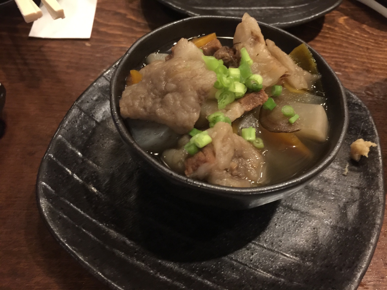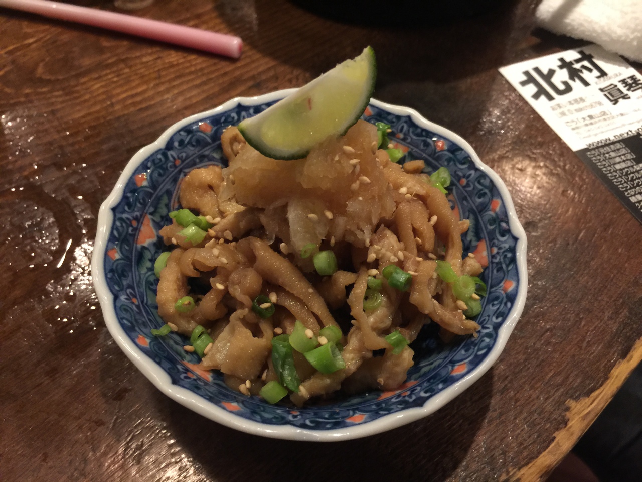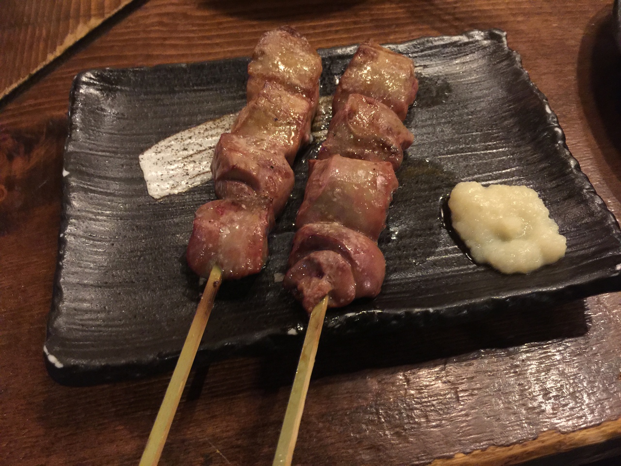 食べものは牛すじ煮込み、、、白レバー串焼き、鶏皮ポン酢、、、