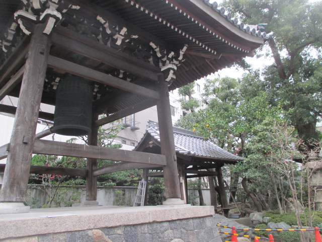 本堂は、浄土真宗寺院の典型的な構造です。山門・太鼓楼は、江戸初期の建築物です。鐘楼の屋根の重厚さを見ただけで、歴史を重ねた建築物であることがわかります。残念ながら工事中で、本来の美しさは見れませんでした。もちろん名古屋市の有形文化財です。