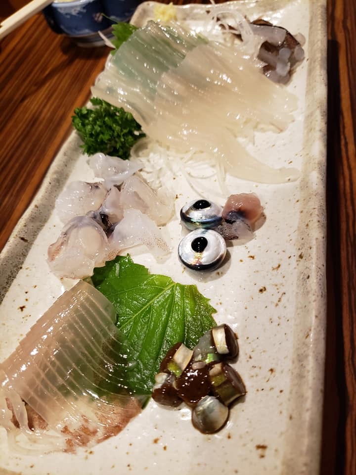 今回は、ザンギ・シマホッケ焼き・活イカ刺身・ラーメンサラダ・岩のりのおにぎり・牛サガリの炭火焼きを注文。