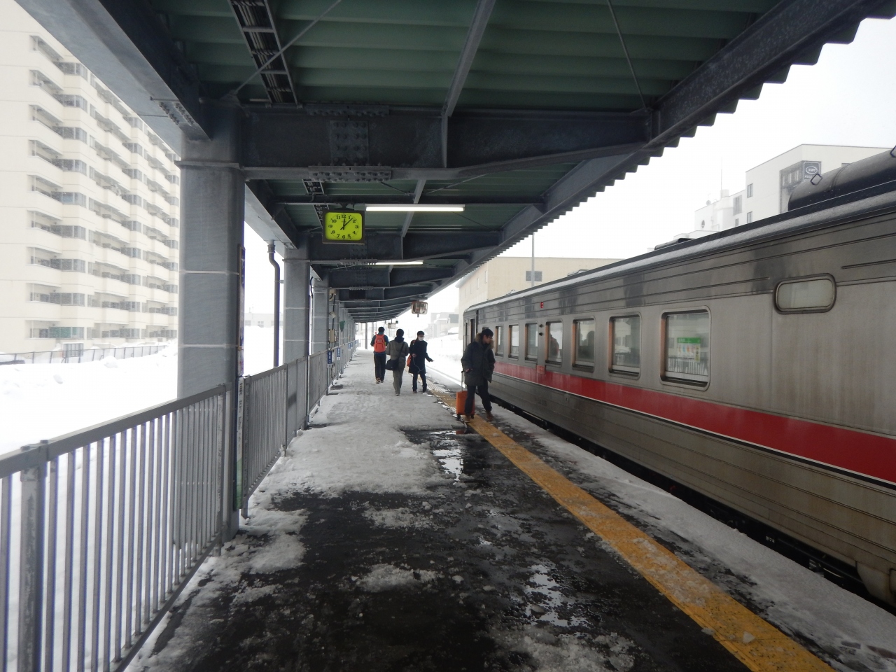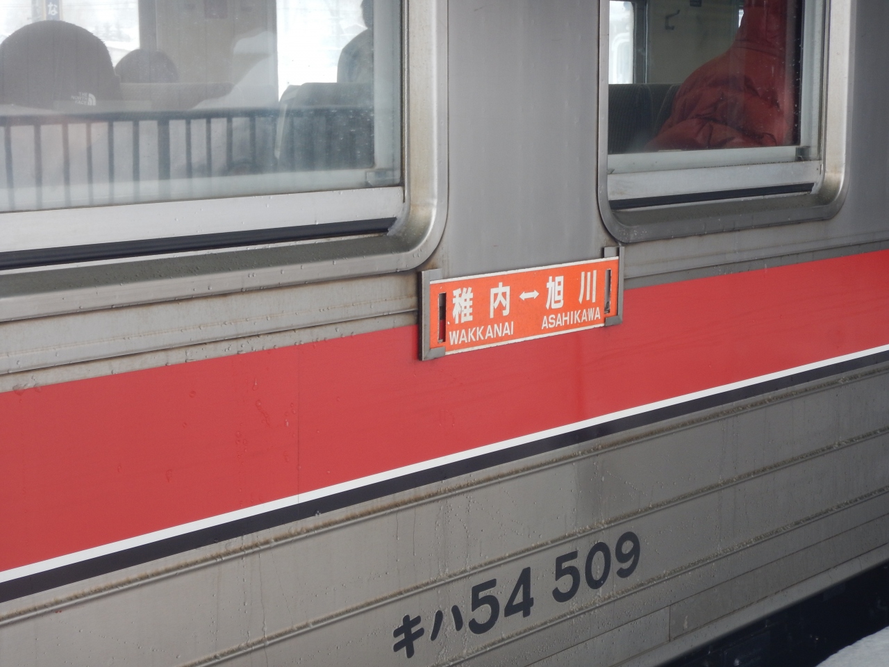 旭川~稚内間は1日に特急が3本、普通列車が乗り継いでも2本しかない。北海道&東日本パスで移動するので乗車できるのは普通列車のみ。幸い早起きできたので、旭川発6時3分の列車に乗ることができた。名寄、幌延で列車番号が変わるが、サイドボードの行き空きは稚内になっていた。