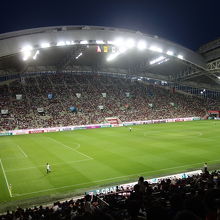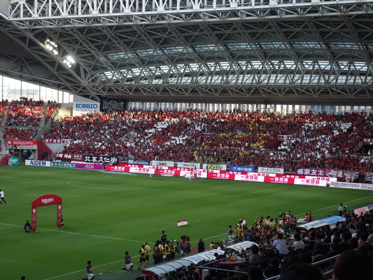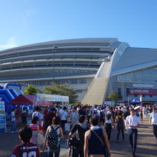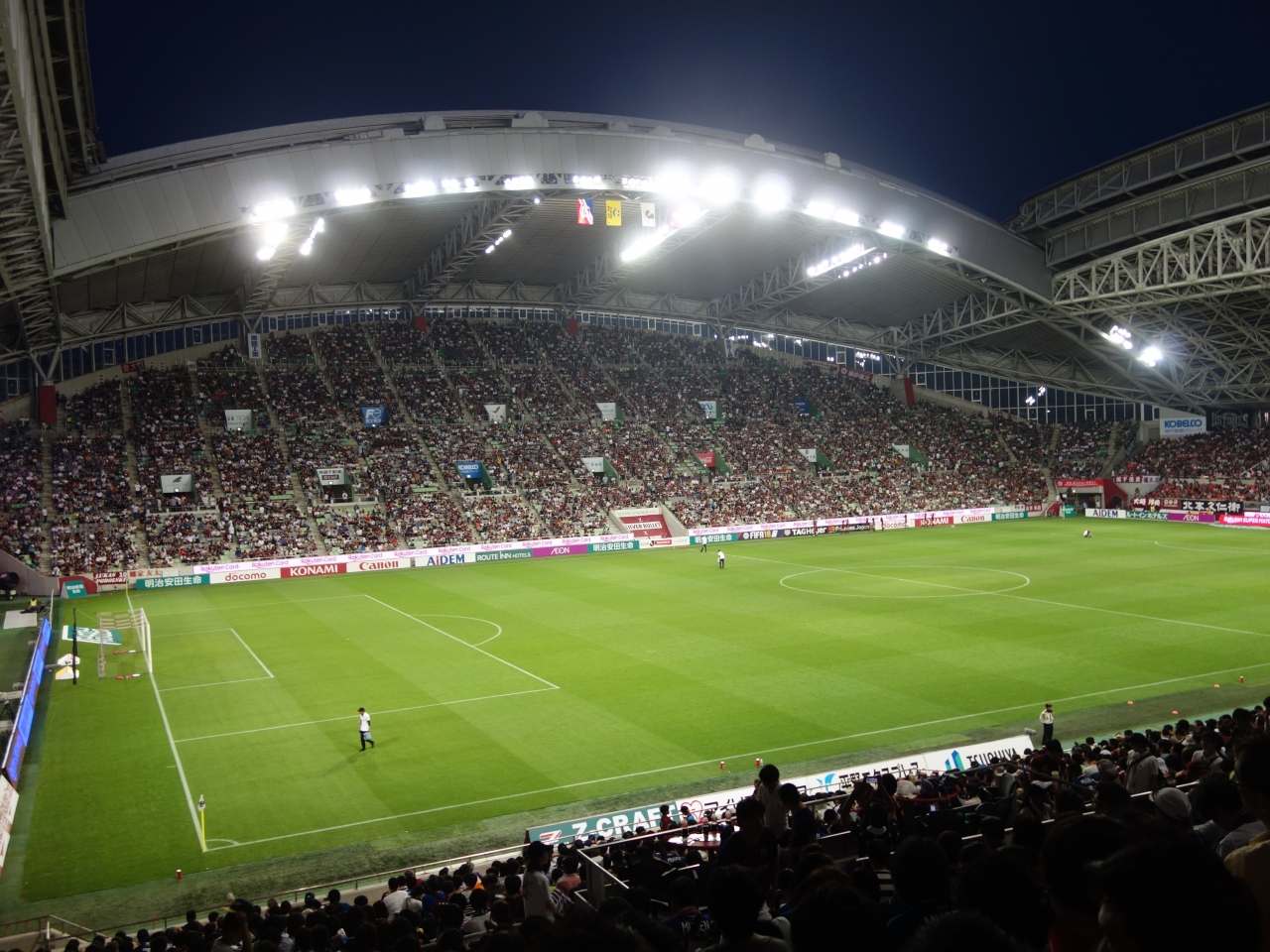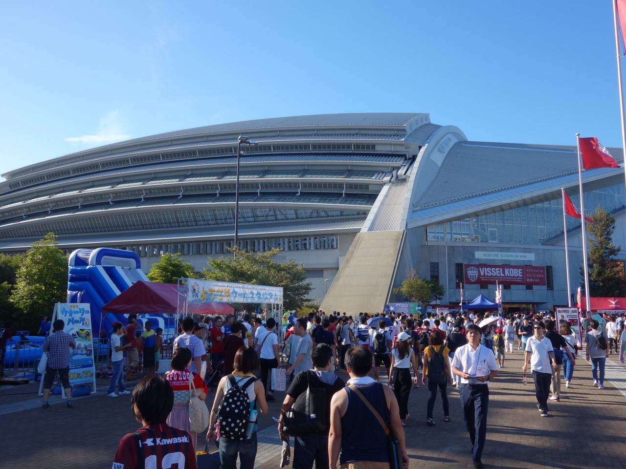 このスタジアムは三宮から地下鉄で数駅と,便利なところにあります。でも地下鉄一本しかないので,帰りの混雑が心配されます。