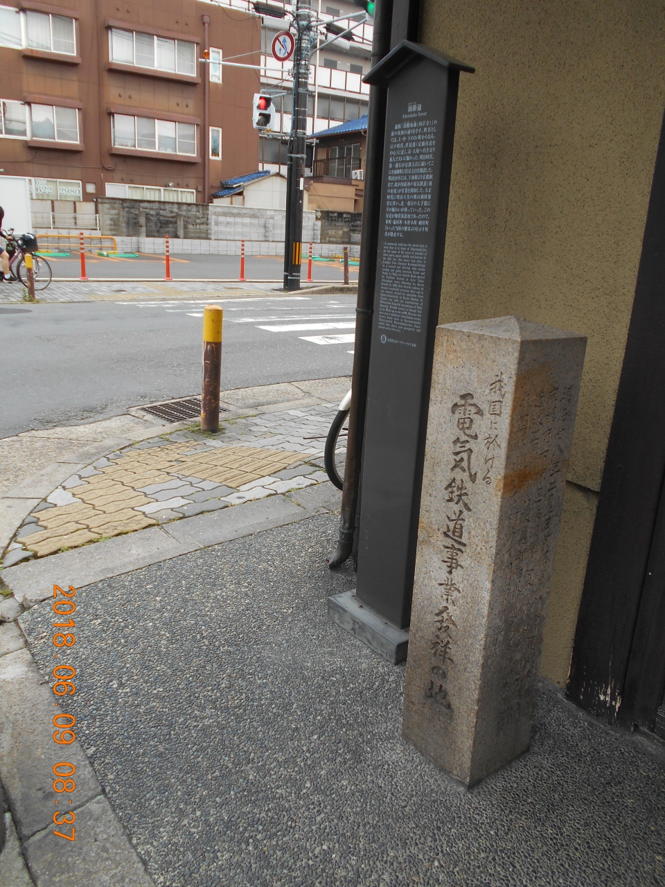 大通り沿いの民家の建物の前に建てられた記念碑は このあたりから京都駅まで 明治28年に電気鉄道が開通した記念碑で 京都駅のすぐ近くにもありました。 両方の地に建てられた記念碑を見学して 当時の人たちの気持ちを考える良い機会となりました。