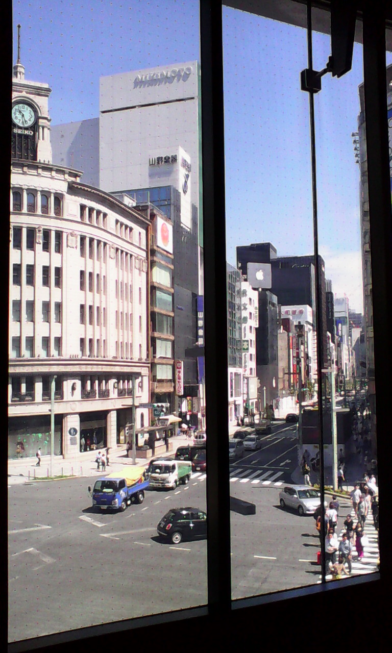 (窓の外には銀座和光や三越が並ぶ交差点を見下ろすことができ、銀座の街並みを見ながら一息つけるのも嬉しいです)