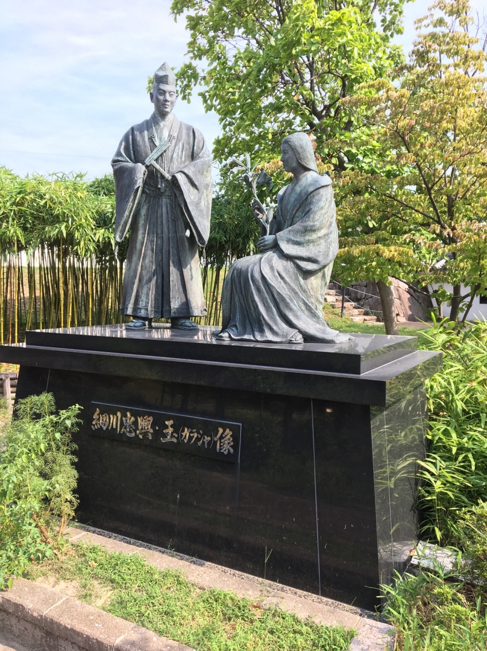 住宅地の中に建物が復元されています。建物以外は、公園に整備されていて散策することができました。公園内には、細川ガラシャと細川忠興二人の像もありました。建物の中には、小規模ですが、無料の細川家の展示コーナーもありました。駐車場もありました。