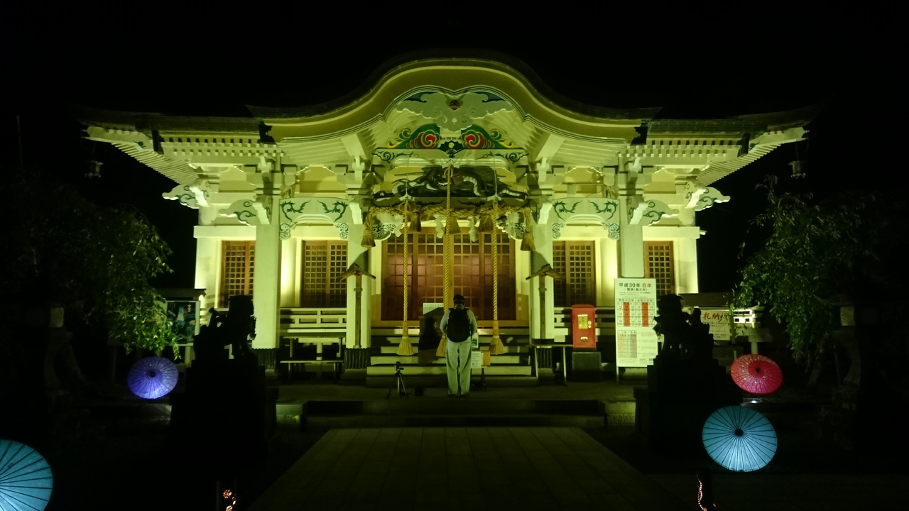 今年は本殿前に和傘が所々にあってライトで照らされてました