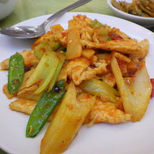 平日ランチ770円と凍頂烏龍茶460円をいただきました。ランチはAが豚肉とセロリのピリ辛炒め、Bがイカとニンニクの芽炒めでした。豚肉とセロリの方はピリ辛でご飯がすすむ味でとても美味しかったですが、イカの方は匂いがちょっと気になり箸がすすまなかった。ライスもスープも杏仁豆腐もぎりぎりの味なので、次回は違うものを食べてみたいと思いました。ちなみに梅蘭でも梅蘭金閣とは系列が違うようなので予約やクーポンを使う時は注意が必要です。