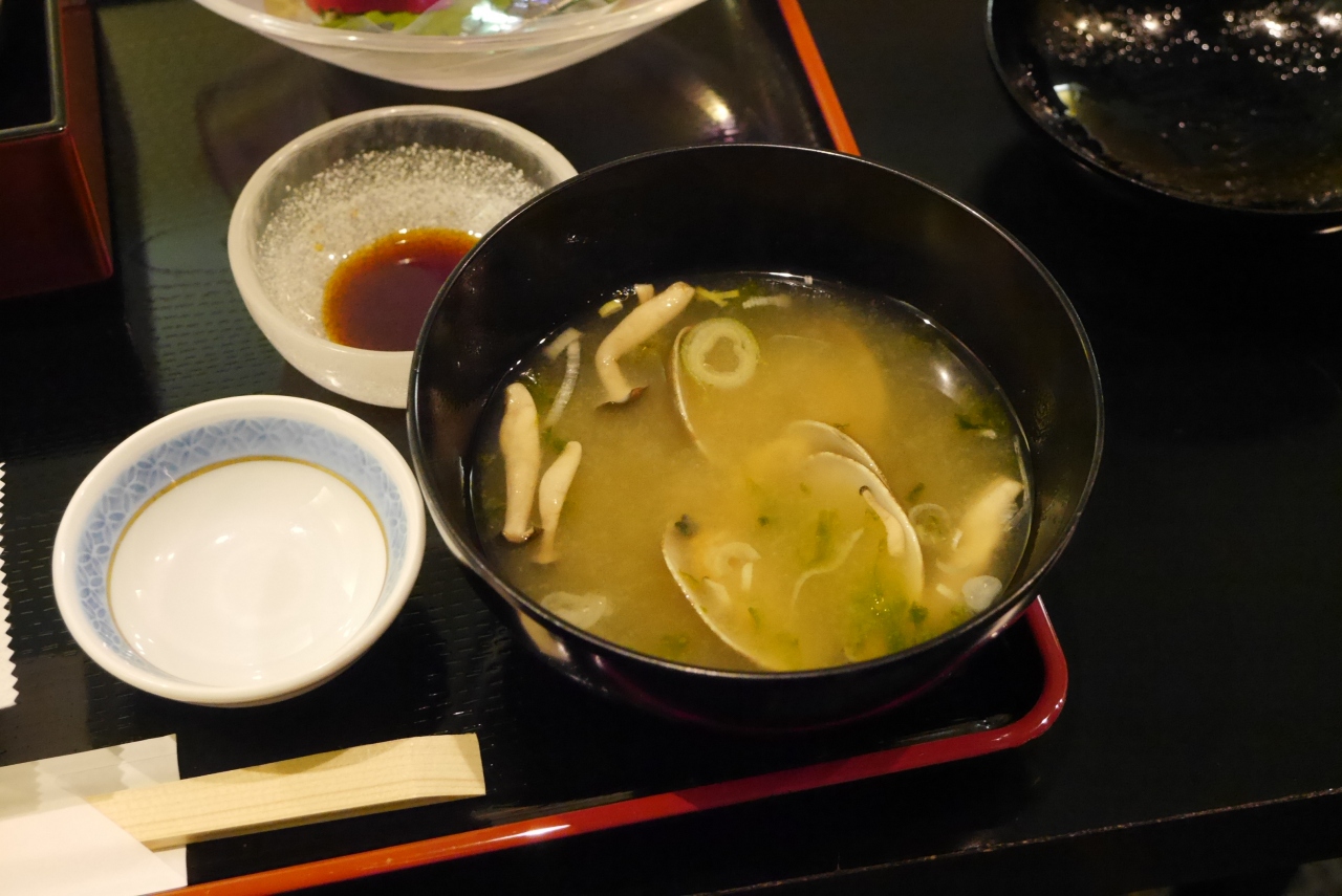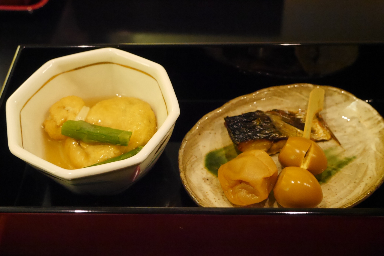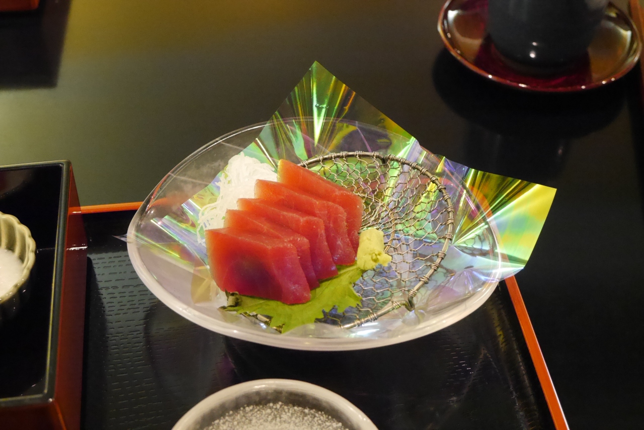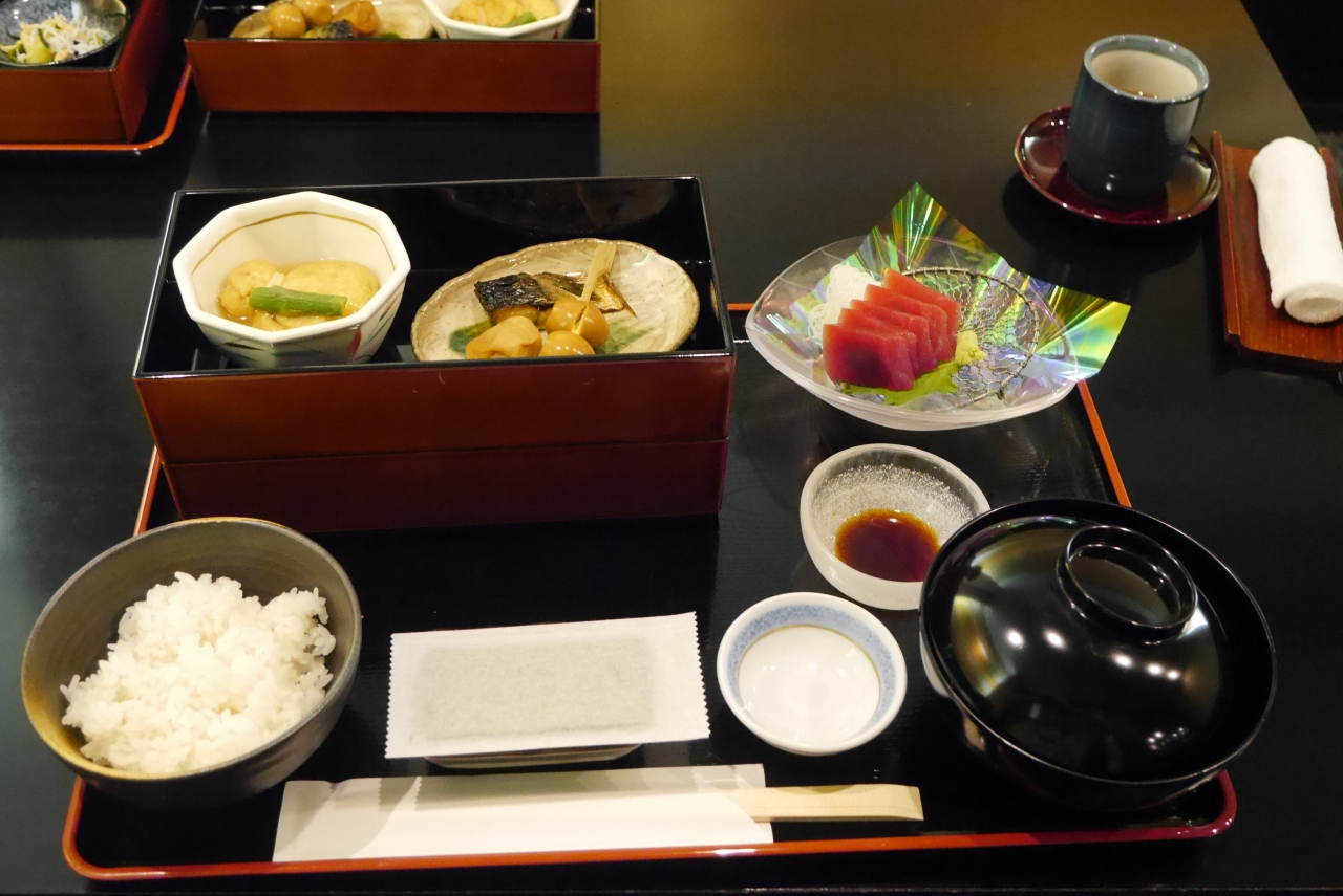 店内は落ち着いた造りでテーブル席で静かにいただきました。小鉢の煮物、焼き物以外にマグロの刺身もあり、ゆったりと食事を楽しめました。