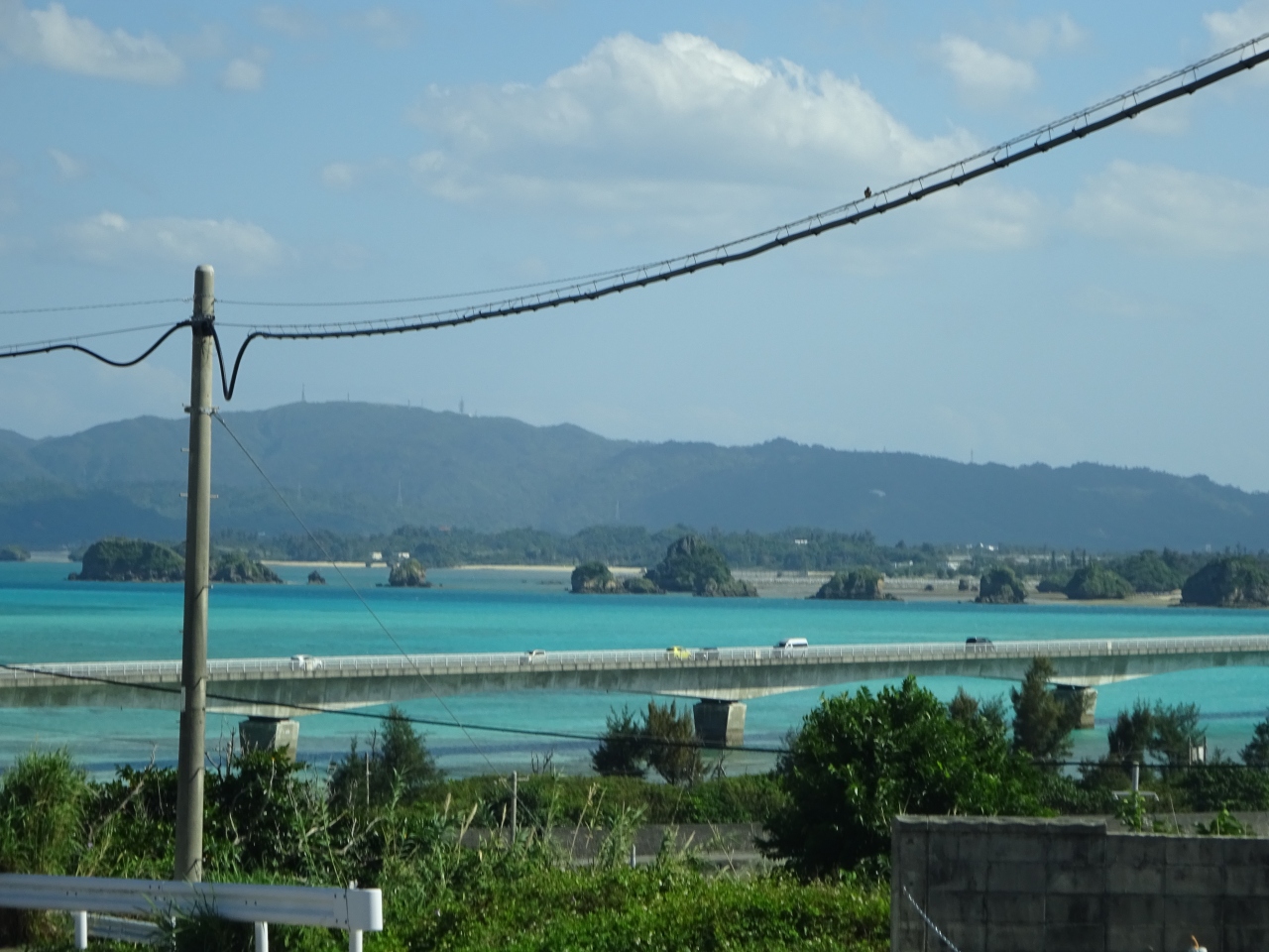 橋に向かって走っている時に見える、橋の両側の海の色は本当に綺麗です。