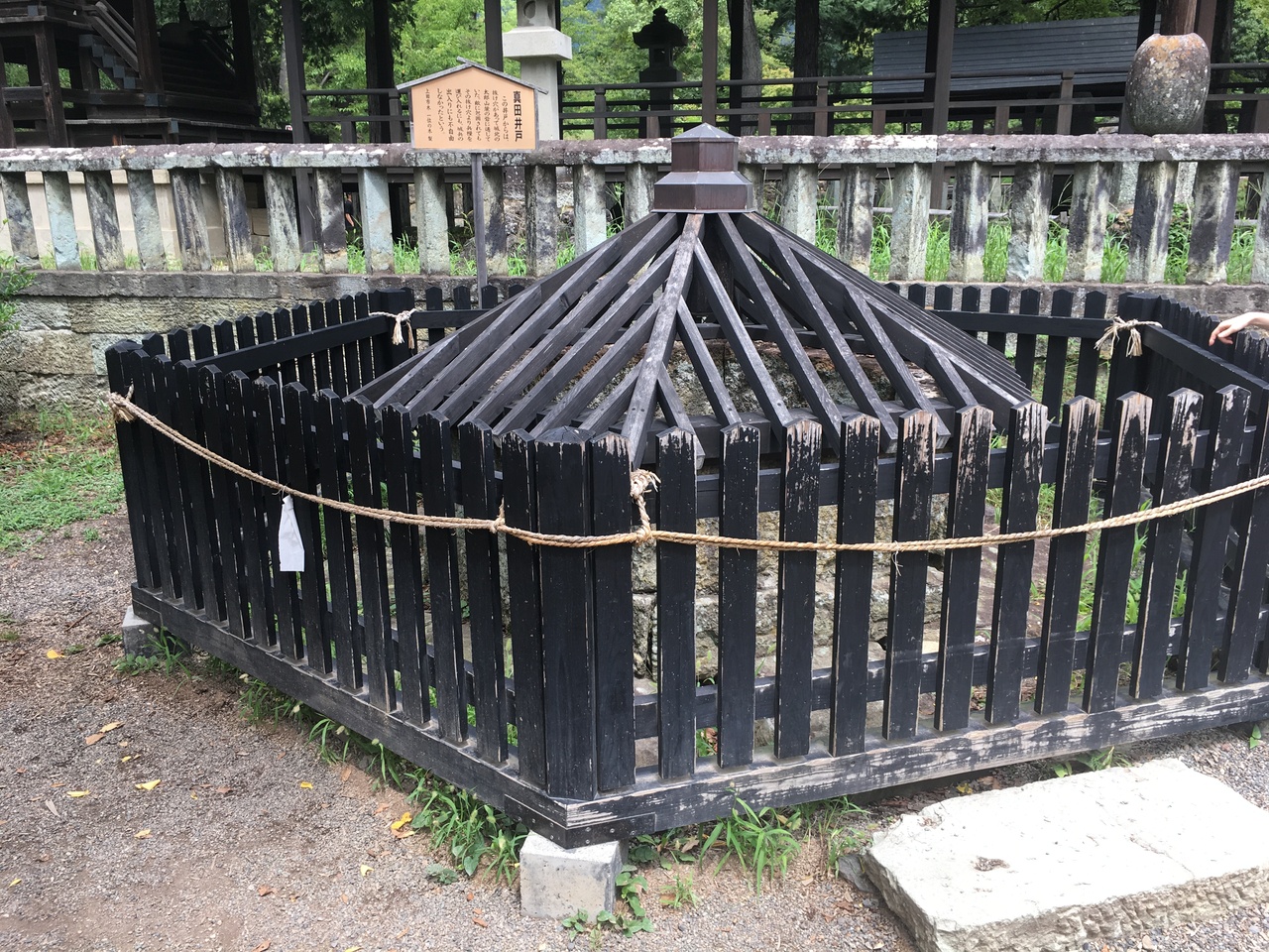 上田城跡公園の真田神社のそばに真田井戸があります。看板もあり、どのように使われていたのかの説明文があります。子供と一緒に訪れたので、きっと忍者が出入りしていたに違いないと説明すると、子供は忍者好きなので喜んでいました。