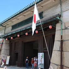 外見は非常に立派な門ですが、門を潜るときに見上げると、鉄筋コンクリートの梁が見え、すこしがっかりします。天守の木造再建と併せ正門も木造で再建して欲しい物です。