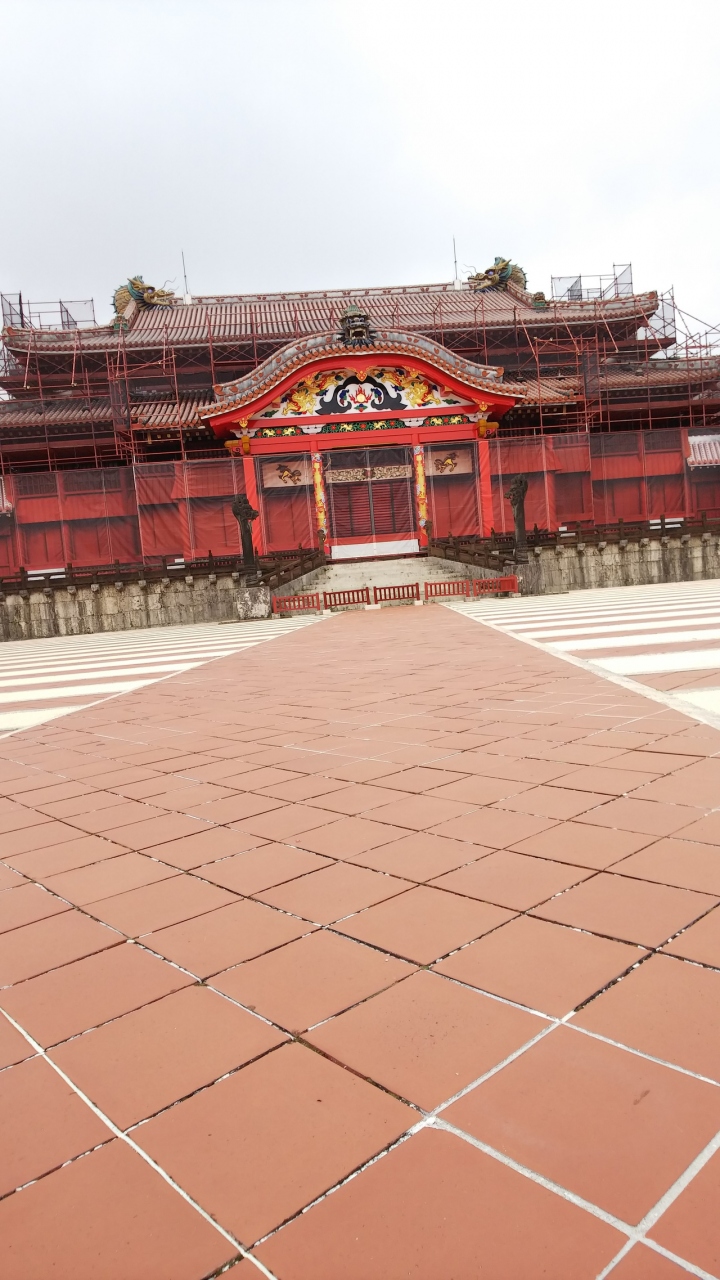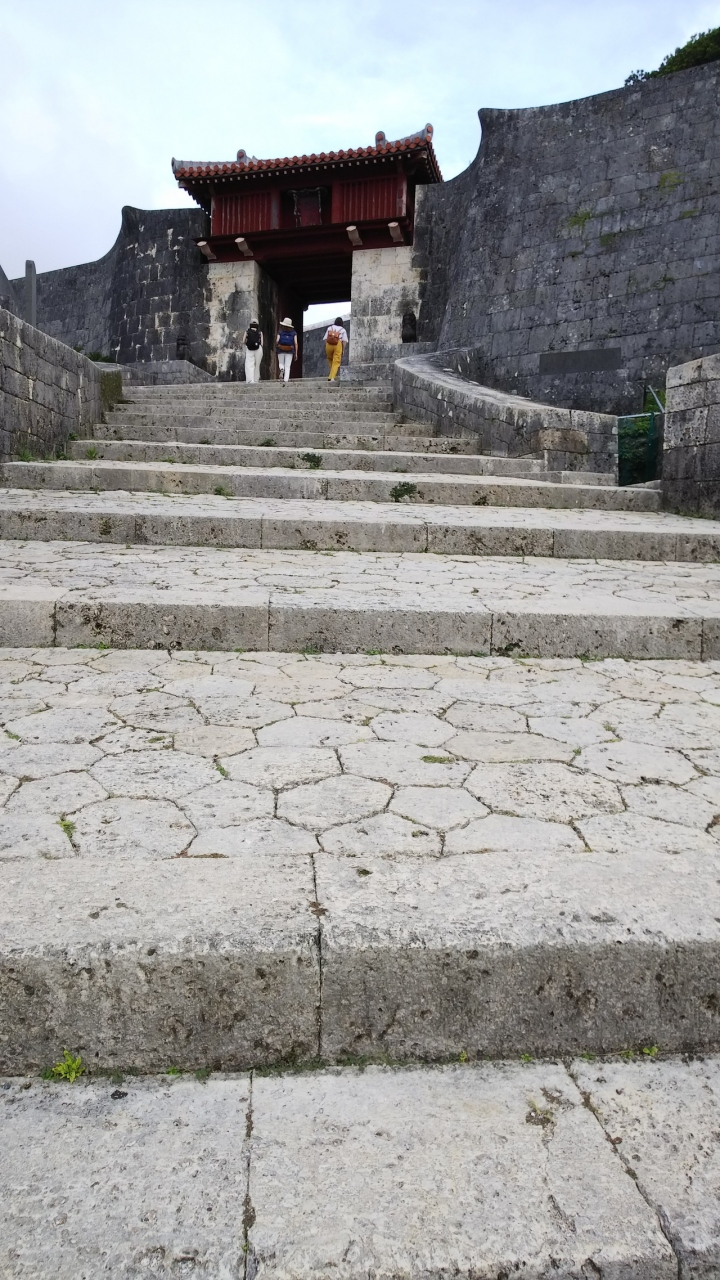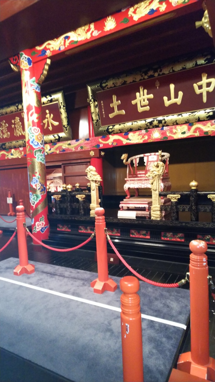 美しい海に遊びにばかり来ていましたが、沖縄の歴史も知りたいとまず首里城から。正殿より有名な守礼門は今まで写真などで見て思っていたよりずっと小さく華やかなものではなかった。城砦の中のいくつもの門を抜けて正殿へ続く。正殿の御庭はTVや本で見た通りの赤と白の縞模様になっている。家来達がこの線にそって整列する。その周りの建物の中が見学できる。沖縄王朝の歴史を見ることができる。日本とも中国とも韓国とも言えぬ独特な文化の沖縄であること。しかし、部屋の畳の間などを見るとやはり日本なのかと思ったりする。歴史に翻弄され今基地に翻弄されている。この美しい沖縄は日本の宝だと思う。もっともっと日本は国をあげて沖縄を大切にしなくてはいけないと思いました。