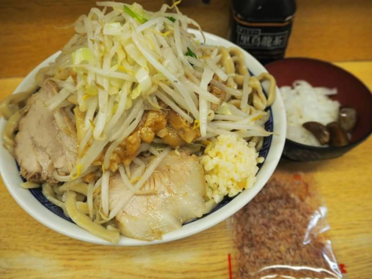 冷まし中華とトッピングにかつおぶし、玉ねぎ、づけにんにくを注文しました。