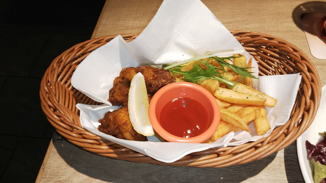 お料理はビールに合うおつまみという趣旨のメニューで、から揚げ、ポテト、サラダ、カリーブルスト、ピザ等が提供されました。