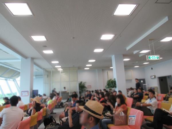 往路は羽田からのJTA臨時直行便で到着しましたが、その折り返しとなる羽田行きに乗るための保安検査場に列ができているのが見られました。
