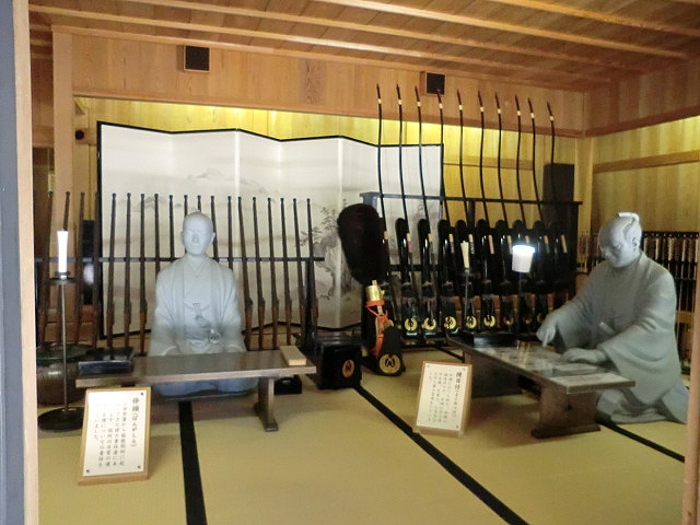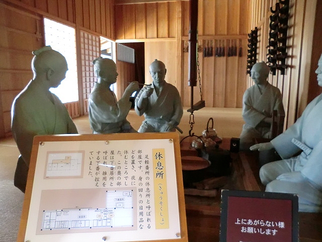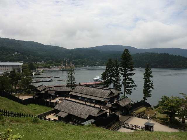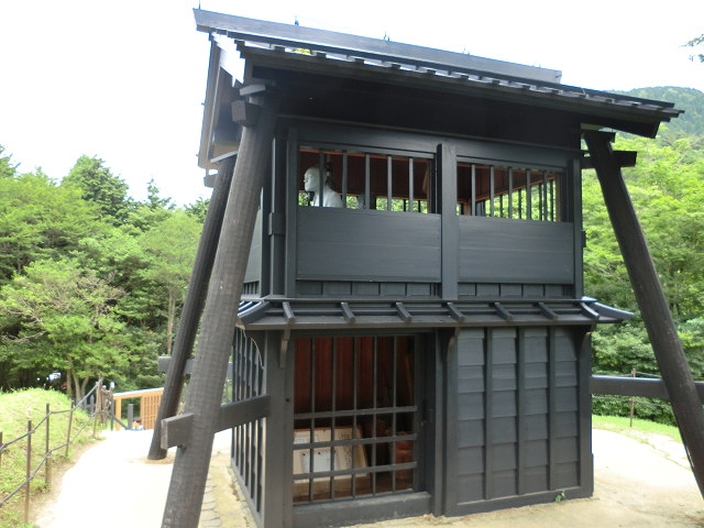 箱根関所を再現したテーマパークです。歴史的な場所なのでぜひ訪れたいと思っていました。門をくぐって厩や雪隠や武器が並べてある部屋、高台に見張り台などがあります。建物の中に無色の人形が配置してあり、リアルさにこだわっている感じを受けました。