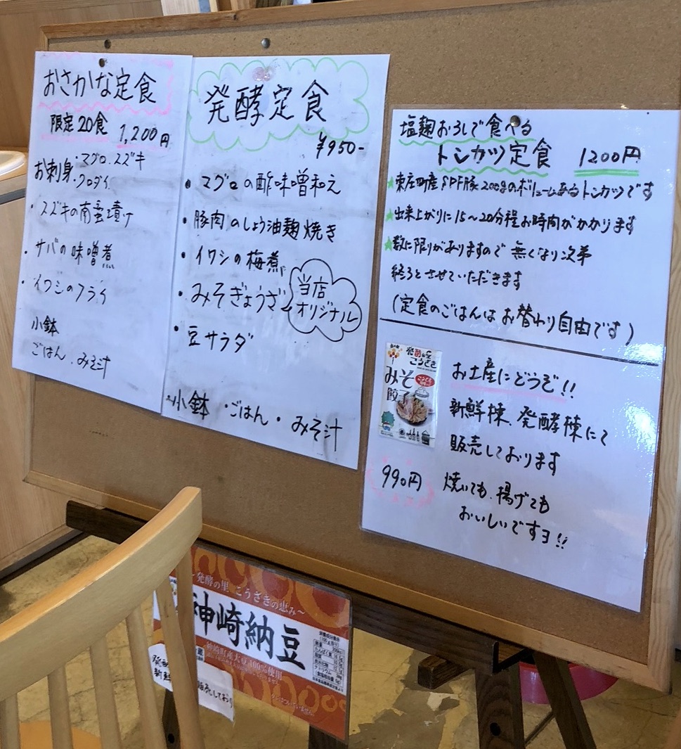 二人で、発酵定食950円と牛肉のわさび味噌焼定食1500円をいたただきました。