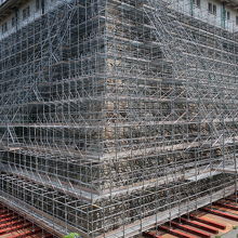 その天守の石垣は現在周りに足場が組まれ、さながら工事現場の様になっており、足場の隙間から覗く石だけしか見られず石垣は殆ど見られません。