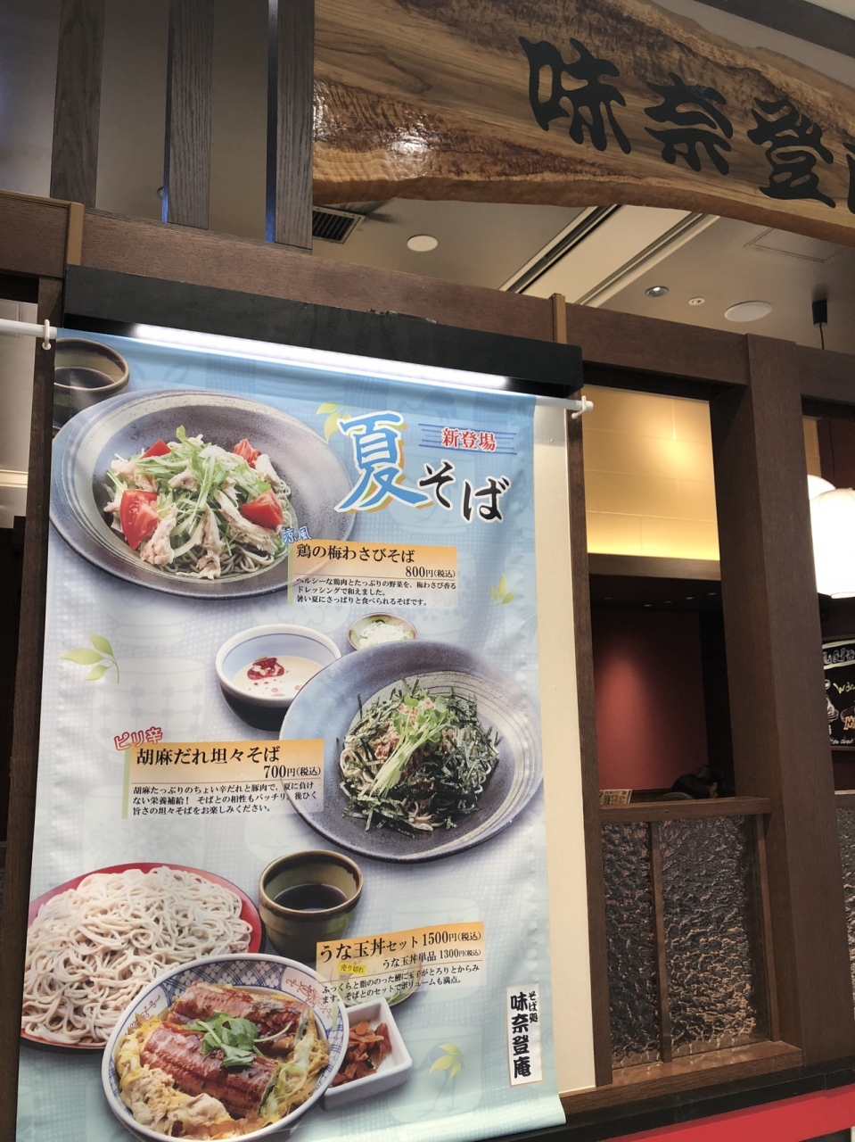ここのビルはオフィスビルなので、週末のレストランフロアは逆にすいているんですが、ミシュランの星をとった天ぷら屋さんとか、フレンチやイタリアンなどもなかなかいいお店が入っています。でも、こう暑いと結局食べたいのはサラっと食べられるお蕎麦。お値段的にもフレンドリーだし・・・。夏メニューの鶏のわさびそば、さっぱりしていて良かったです。