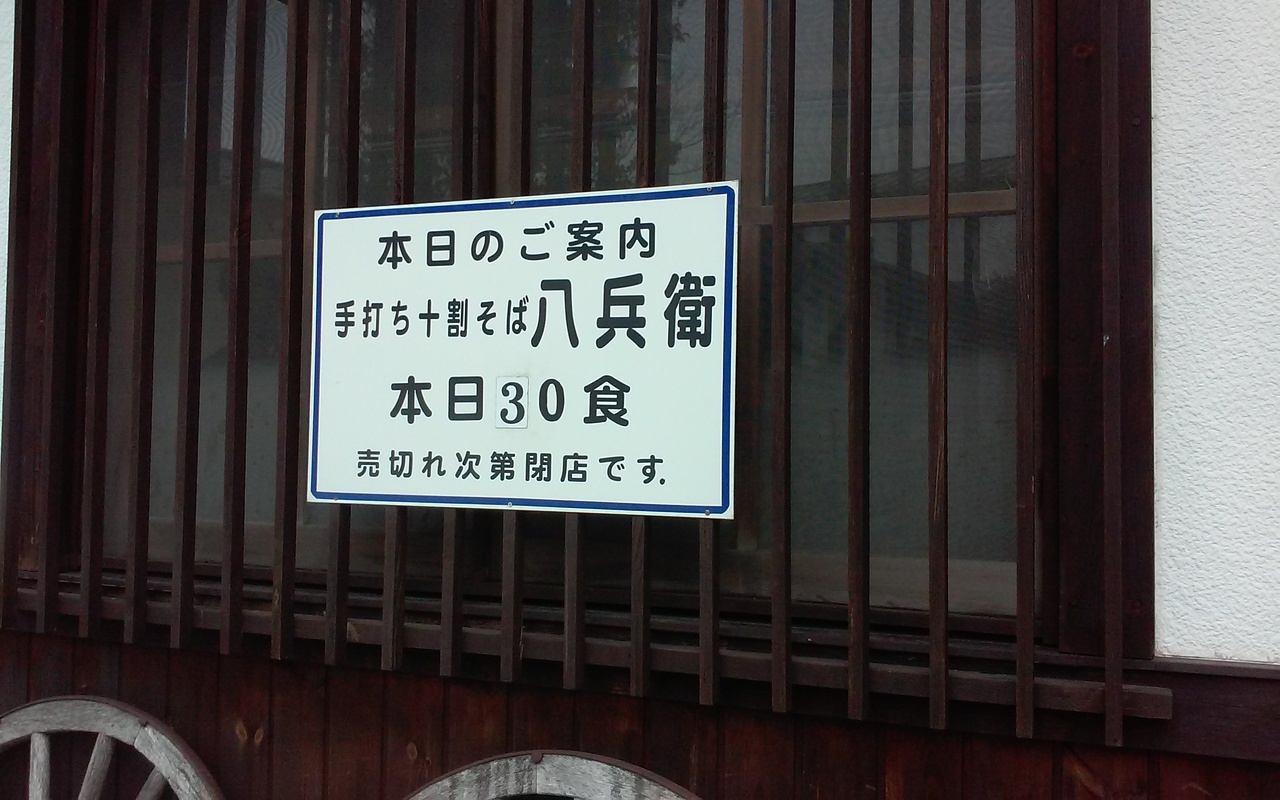 昨年来たときと違う道を通ったので、別の店を発見出来ました。お蕎麦やさんだけでも、3軒目です。十割蕎麦屋さんも2軒目です。お客が迷子にならないように、親切な標識が立っているのでありがたいです。駐車場もメインの大駐車場だけでなく、所々に小さな駐車場があるので、探してみるといいです。