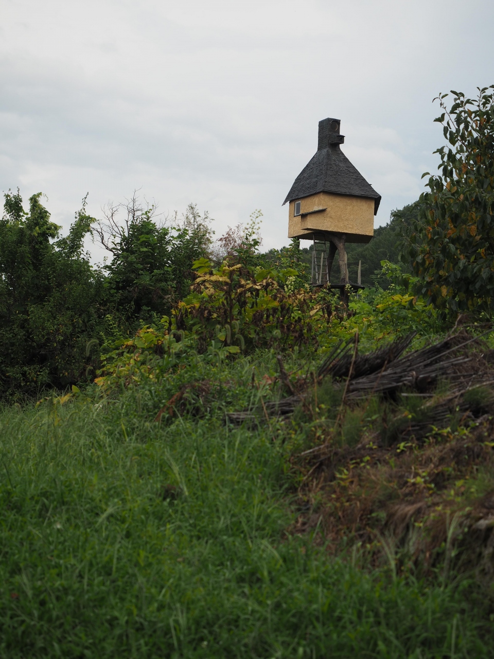守矢史料館の裏手の畑を上っていった先にあるので、史料館に行ったならぜひこちらにも。藤森照信氏の作品で、なんとご自分のご実家の畑に建ててあります。