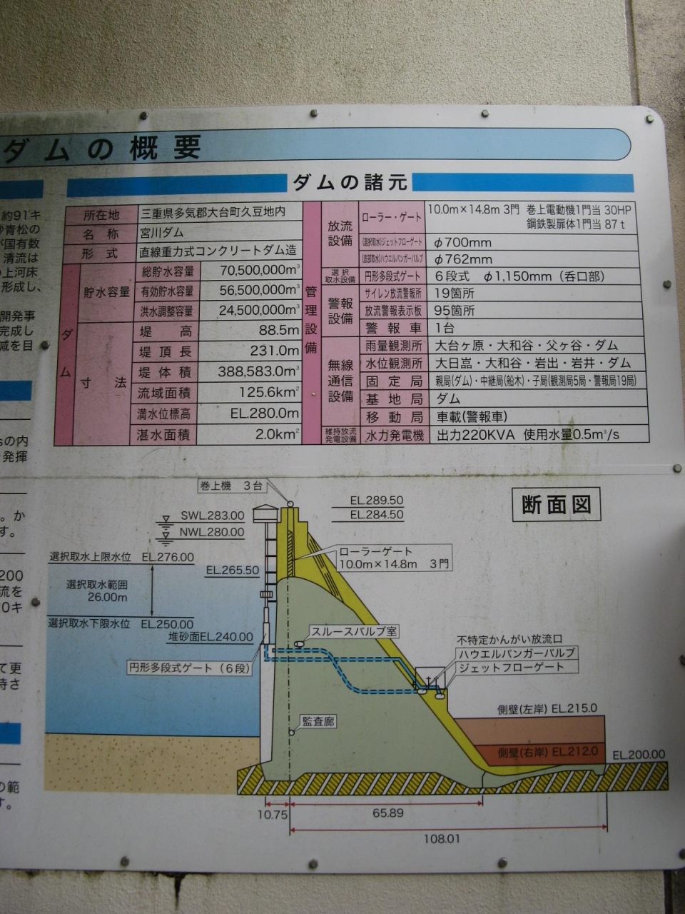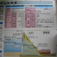 ダム堤体の傍にダムの仕様と図があり、構造が判りやすくて良かったです。