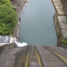 竣工が1956年と比較的古く、洪水吐は巨大なローラーゲート3門を装備していて、訪れたときはジェットフローゲートから河川維持用水の放流中でした。