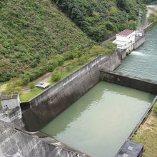 ダム堤体上は車の通行が可能で、堤体上から下流側を覗くとそこそこ迫力があり、右岸には発電所も見ることができました。また、ダム湖側には表層曝気循環装置と言うダム湖の水を噴水状にして空中に噴き上げることで淡水赤潮の原因となる植物プランクトンを抑制する装置が稼働している様子も見ることができました。ダムサイト右岸側にダム管理所と駐車場があります。管理所の傍に展望台に至る道があります。登りは少々きついですが、ダムの全景を見渡すことができますので天気の良い日は展望台まで上がられることをお勧めします。