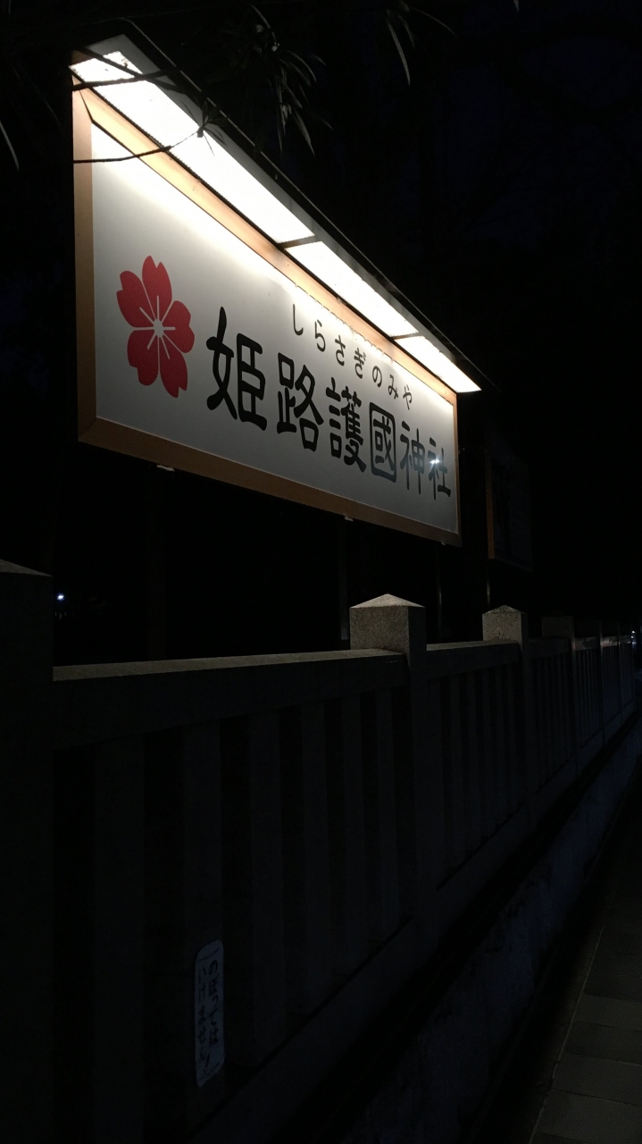 姫路城の並びにある兵庫縣姫路護國神社。結婚式場にもなるきれいによく管理された神社で、敷地も大きく拝観するのにもいい場所なのですが、割とオープンにしていることが多い神社ですが、ここは夜間の立ち入りは出来ないようになっています。拝観をする場合は、早目の時間がいいと思います。