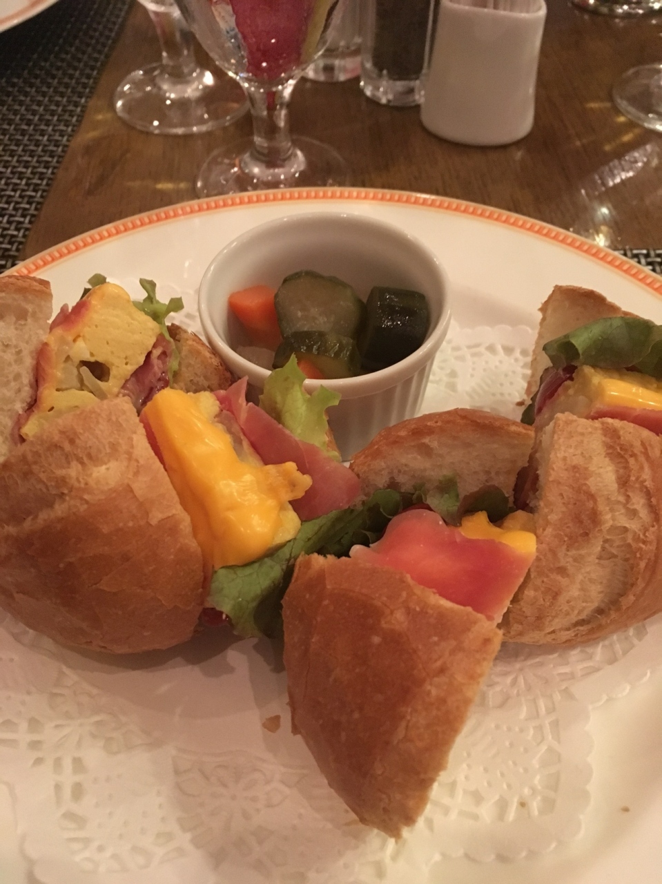 スペインオムレツに生ハムやチーズ、トマトが挟んであり、スープも本格的なお味でした。お値段は高めですが、頼んだお料理は全部美味しかったです。