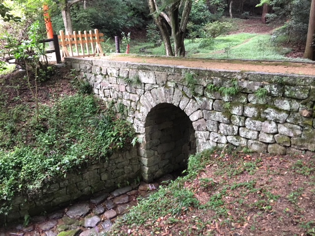 大麻比古神社を参詣した後に、本殿の裏に廻りました。神社参拝の後、本殿の裏に回り込むことはないのですが、このドイツ橋があることを調べてあったので、行って見ました。まずはメガネ橋があり、その奥の方にこのドイツ橋がありました。第1時世界大戦のドイツ捕虜が作ったのだそうです。とても小さな橋で、実際に渡ることはできません。