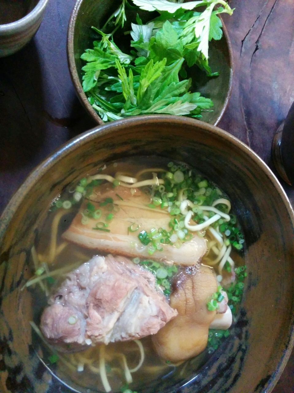 すっきり綺麗なスープで、丁寧に作られた感じがします。とても、美味しい。おすすめは、スペシャル(800円)で三枚肉、ソーキ、てびちが乗っています。別皿でよもぎが付いてきます。