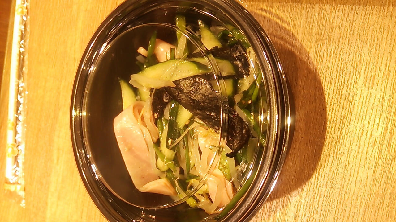 もやし、キャベツ、ハム、海苔等が入り、あっさりとした味わいがし、美味しく頂きました。