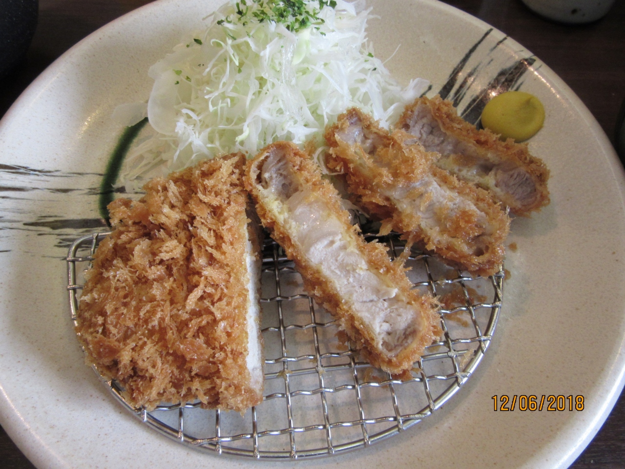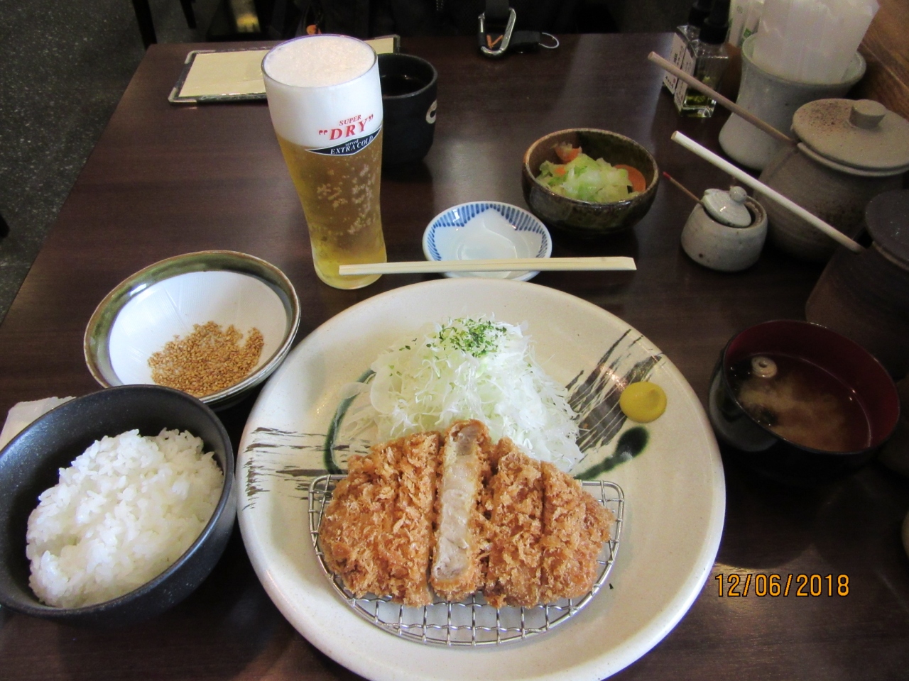 4人テーブル6、2人x2、カウンター5席と決して広くはない店。金華豚ロースかつ膳1,512円と生ビール594円=2,106円。金華豚は中華料理の金華ハムで有名で世界最高峰の幻の豚だそうだ。金華豚のロースかつはとろける美味しさ、ご飯のつや姫もふっくら米がたっていて素晴らしかった。胡麻をすりおろしてソースをかける本格派。ご飯・味噌汁・キャベツおかわり自由。メニューにはカレー・ハンバーグ・フライ類もあった。さすがに東京の丸の内や六本木に逆進出している素晴らしい名店だった。