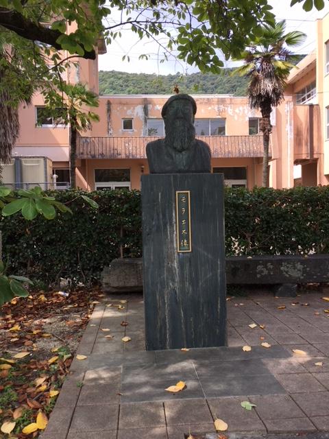 瑞巌寺から阿波おどり会館へ小学校の横を歩いて行くと、モラエス像がありました。モラエスさんのことを知りませんでしたが、ポルトガルの外交官だそうです。通りとしては何の特徴もない通りですが、瑞巌寺は良いお寺なので、阿波おどり会館のついでに立ち寄られてはいかがでしょうか。
