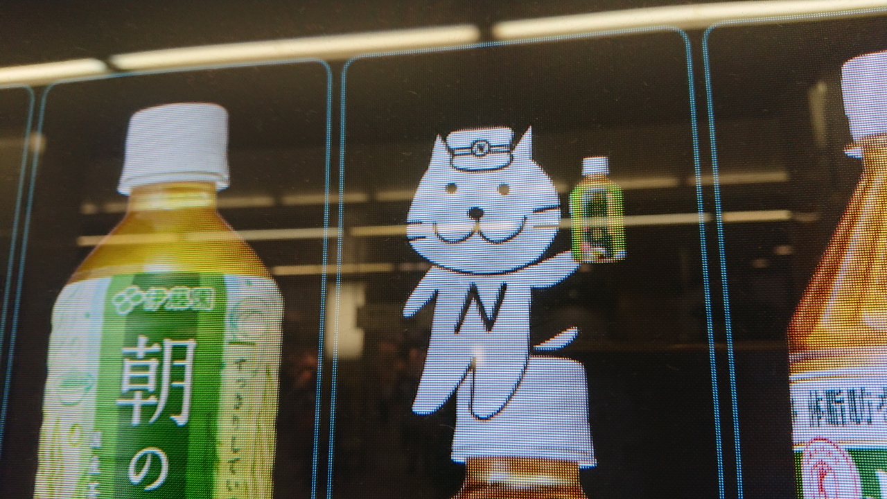 JR日暮里駅構内にある自販機(acure)に、日暮里駅限定のキャラクター・にゃっぽりが登場していました。