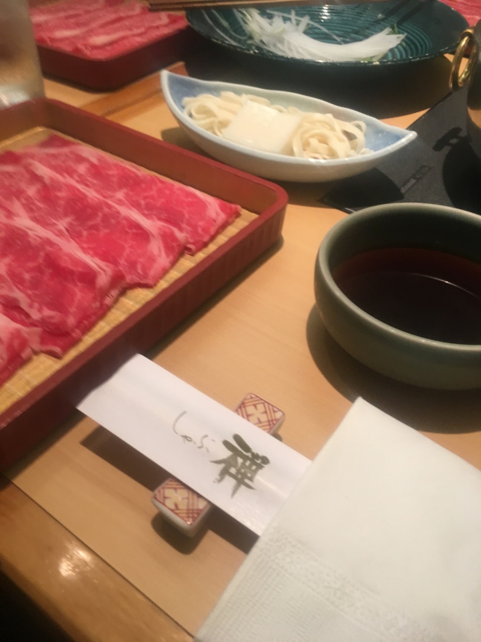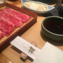 会社の人達と一緒に訪れました。ランチタイムの牛しゃぶコースをいただきました。つけダレはぽん酢と胡麻だれ2種類の両方を味わうことが出来ます。程よいサシの入った牛肉は柔らかくて美味しかったです。締めのうどんもなかなかの味わいでした。