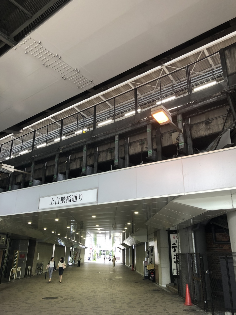 神田駅は陸橋の上にあり、そのほぼ中央部の下をとおる東側と西側を結ぶ道です。