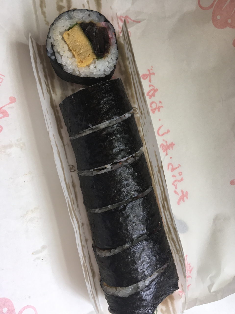 別府駅そばの高架下にあるお惣菜やさん。とり天やおからなど、おかずが並んでいます。どれも美味しいけれど、おすすめは太巻き寿司。かんぴょうにしっかり味がついていて、ほんのりシソがきいています。食べやすいようにカットもしてあり380円。昼過ぎにはなくなります。