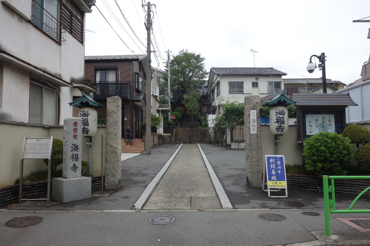 地域に見どころある寺院などいくつも有ってお寺巡りを兼ねた散策に出かけた際こちらの海福寺へ立ち寄りました。住宅街のに有って隣は五百羅漢寺です。参道の向こうに急な石段が有ってそれを上がると有名な四脚門があります。静かで落ち着いたお寺でした。