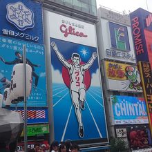 大阪・ミナミを代表する観光スポット、グリコの看板です。平日の昼でも、日本人も外国人も観光客で賑わっていました。