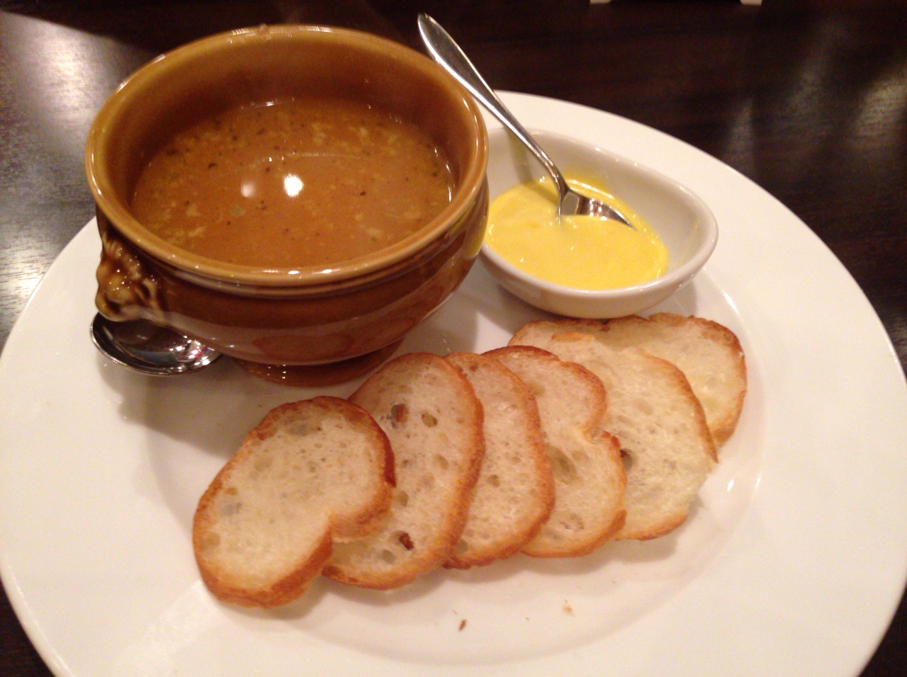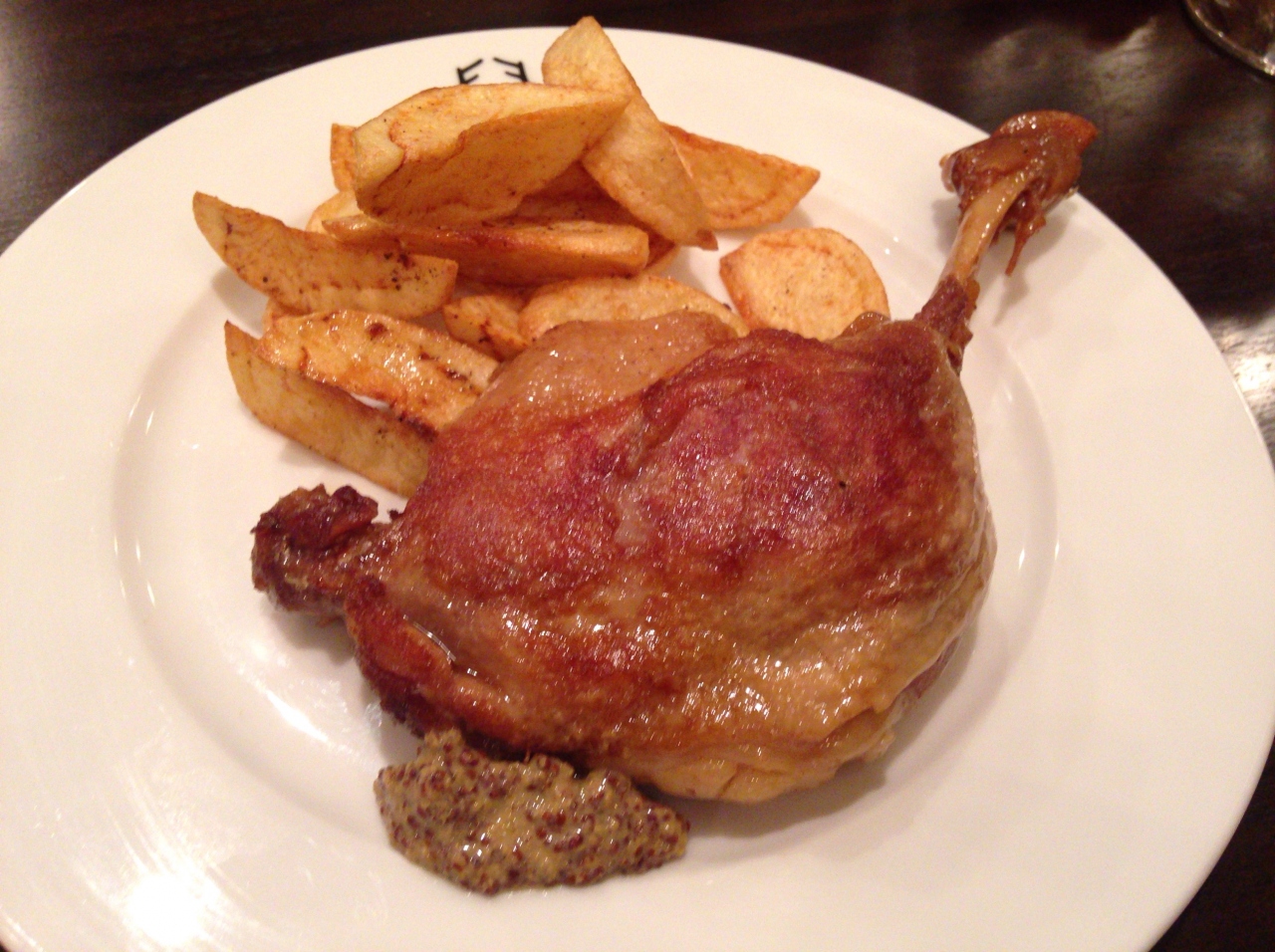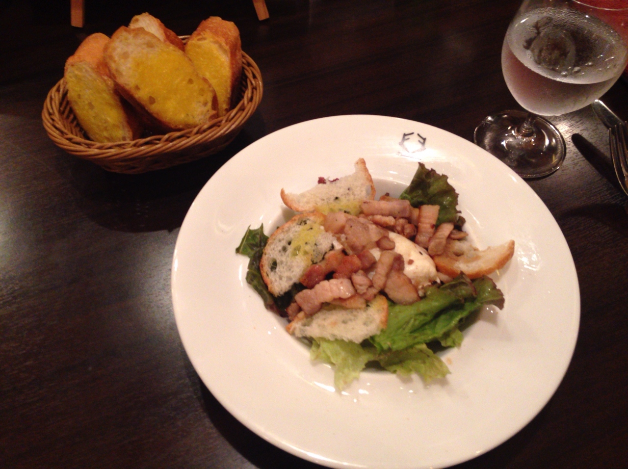 個人的には魚のスープはもっと臭みがあると良かったが、やや薄味で、いろいろな味が入っていて美味しかった。サラダも具のベーコンが食感、辛味とても美味しかった。コンフィは良く鶏肉の臭みのような味わいがあるので、少々不安だったが、見事に調理されていて、こちらもとても美味しかった。