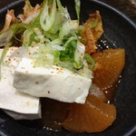 看板メニューの餃子はもちろん美味しいが、厚揚げ焼がボリュームがありフワフワしていて美味しかった。
