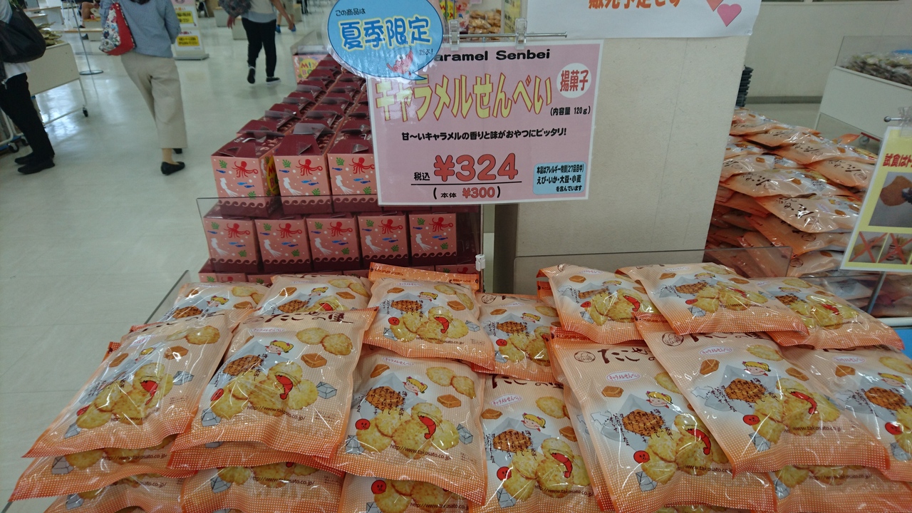 たこせんべいやエビせんべい、キャラメル味やかりんとう味のものなど、たくさんありすぎて、選ぶのに迷ってしまいました。